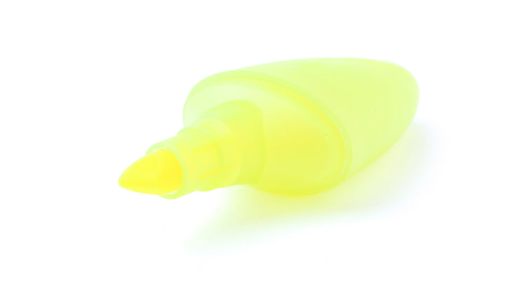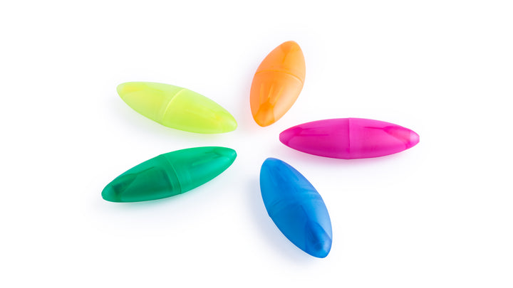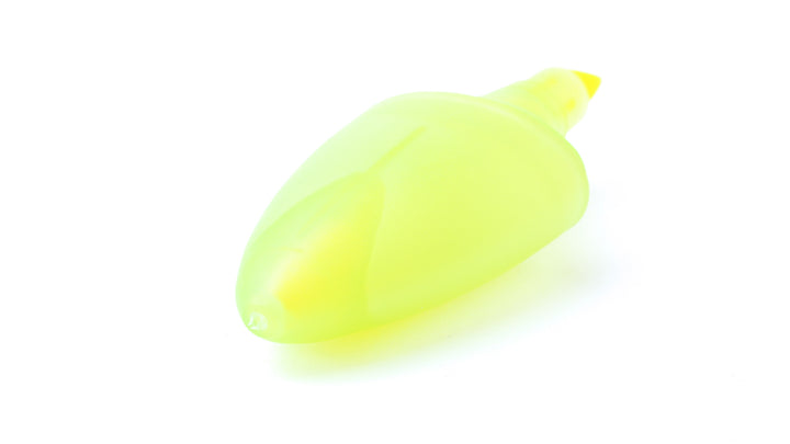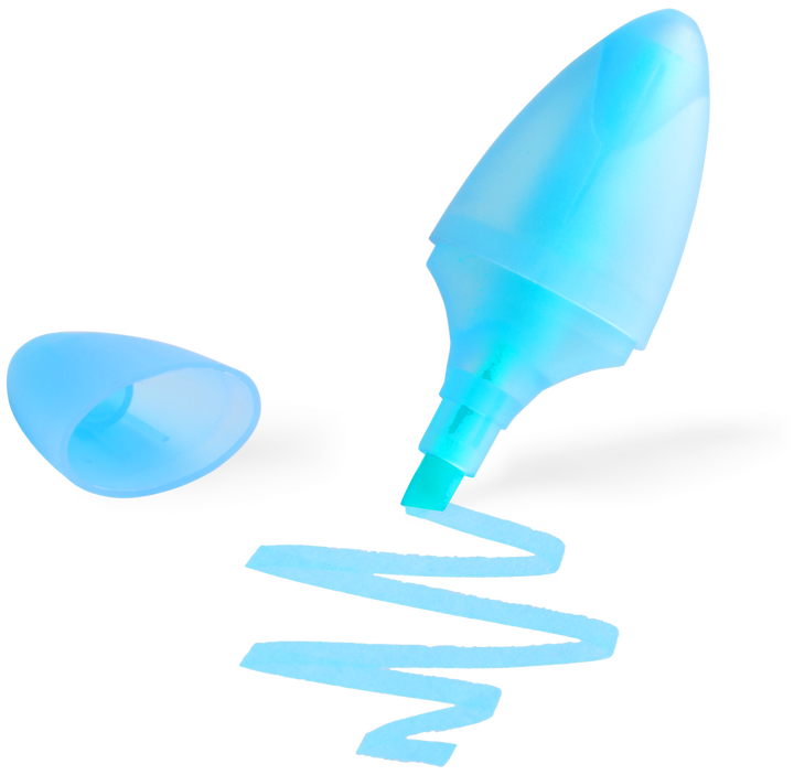 Textmarker mit minimalistischem Design in lebhaften Farben. Mit ovalem, transparentem Gehäuse mit Kappe.