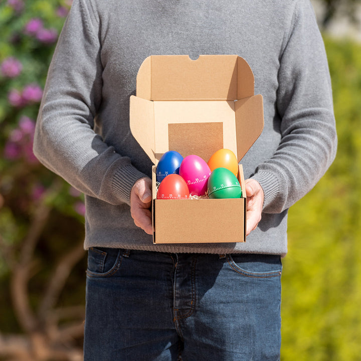 Analoger Timer mit originellem, ovalem Design in lebendigen Farben. Timing von bis zu 60 Minuten. Präsentiert in einer attraktiven Designbox.