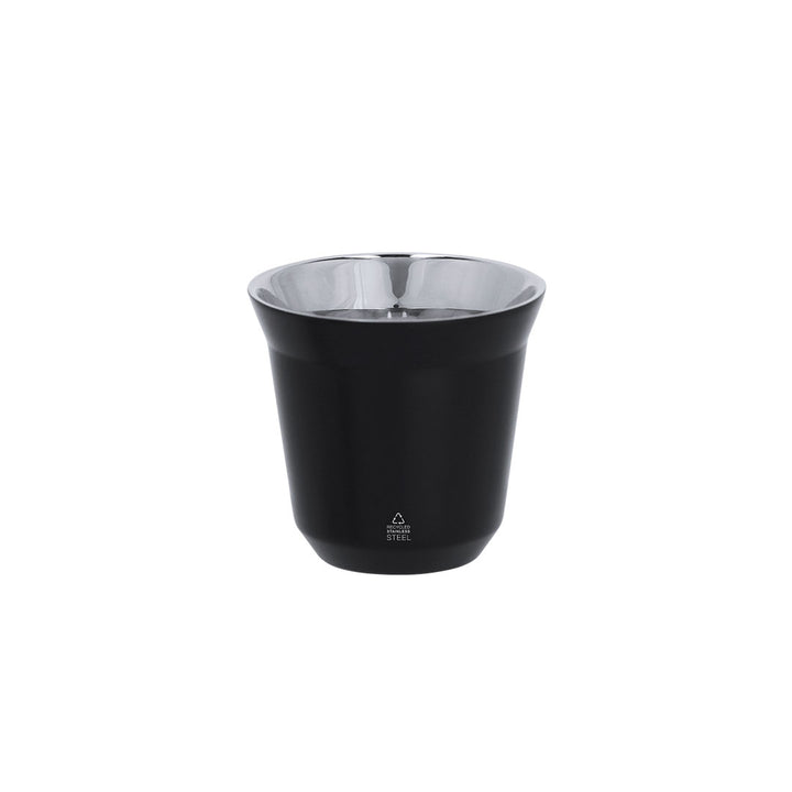 Elegantes Set von Doppelwand-Tassen aus recyceltem Edelstahl. Enthält zwei Tassen, jede mit einer Kapazität von 80 ml.Edelstahl ist eines der gefragtesten Materialien, die fast überall zu finden sind, von Alltagsprodukten bis hin zu großen Konstruktionen. Mit unzähligen Eigenschaften, von denen die Haltbarkeit und hohe Wiederverwendbarkeit hervorzuheben sind, wird es zu einer sehr geschätzten Alternative für nachhaltige Lösungen. Die ordnungsgemäße Behandlung ermöglicht die Gewinnung neuer Ressourcen mit unendlicher Verwendung.