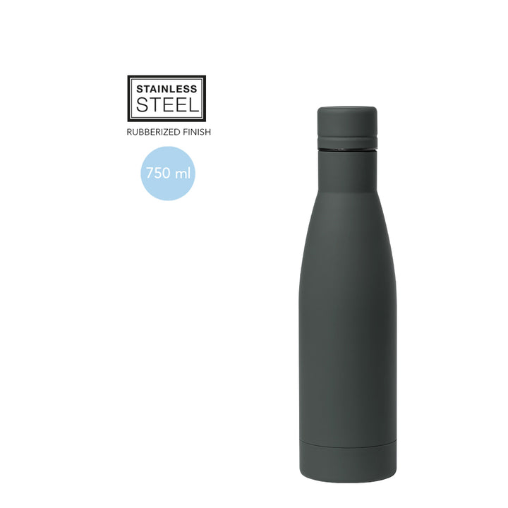 Hergestellt aus hochwertigem rostfreiem Stahl, zeichnet sich die Flasche durch ihre Widerstandsfähigkeit und lange Lebensdauer aus. Der gummierte Überzug sorgt für eine angenehme Haptik und einen sicheren Halt, wodurch die Flasche auch bei sportlichen Aktivitäten oder Outdoor-Einsätzen zuverlässig in der Hand bleibt.