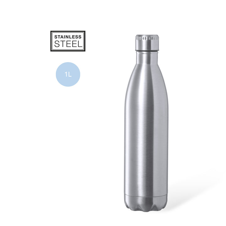 Hergestellt aus hochwertigem rostfreiem Stahl, überzeugt die Flasche durch ihre Robustheit und eine glänzende Oberfläche, die für ein modernes und elegantes Aussehen sorgt. Der Edelstahl-Schraubverschluss gewährleistet, dass keine Flüssigkeit austritt, wodurch die Flasche besonders praktisch für den täglichen Gebrauch wird.