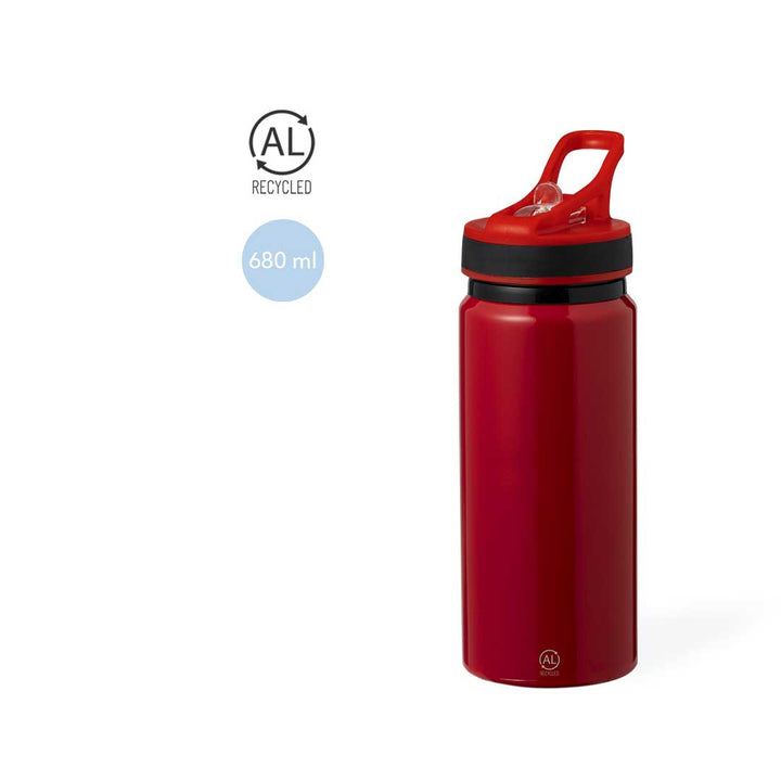 Die Trinkflasche Nolde kombiniert praktischen Nutzen mit einem nachhaltigen Ansatz und einem modernen Design. Sie besteht aus recyceltem Aluminium und bietet ein Fassungsvermögen von 680 ml, was sie ideal für den täglichen Gebrauch unterwegs macht. Das Material ist nicht nur leicht, sondern auch widerstandsfähig, wodurch eine lange Haltbarkeit gewährleistet wird. Die GRS (Global Recycled Standard) Zertifizierung stellt sicher, dass das recycelte Material nachvollziehbar und umweltfreundlich stammt.