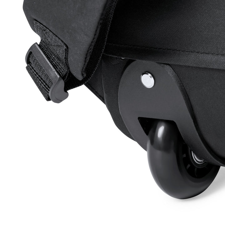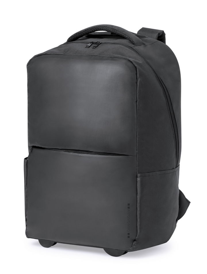 Antonio Miro Trolley-Rucksack, aus strapazierfähigem 300D-Polyester mit schwarzer Oberfläche. Hauptfach und Außentasche mit passendem Reißverschluss, gepolstertem Tragegriff und Seitentaschen Markenlogo auf einer Seite. Gepolstertes Innenfach für Laptops bis zu 15" und Tablet-Tasche bis zu 11". Gepolsterte, verstellbare Schultergurte.