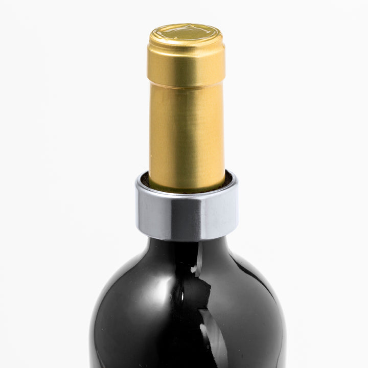 Praktischer Tropfstopp aus Edelstahl. Passt sich an den Flaschenhals an und verfügt über eine gepolsterte und mit Samt ausgekleidete Innenseite, um überschüssige Tropfen beim Ausgießen aufzufangen. Außenmaterial aus Edelstahl, das es langlebig macht. Präsentiert in einer individuellen Kraft-Designbox.