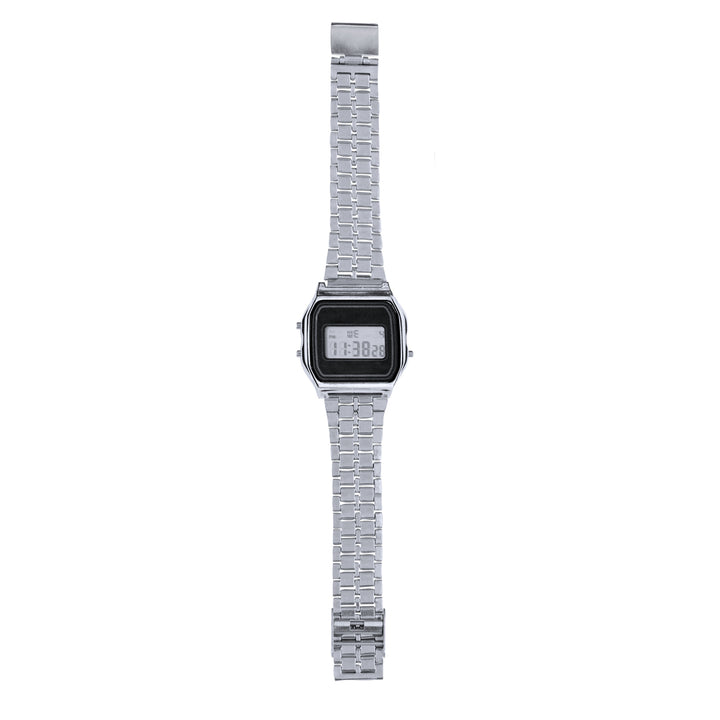 Uhr mit edler Metalloberfläche. Mit LED-Hintergrundbeleuchtung, die eine klare Zeitanzeige auch bei schlechten Lichtverhältnissen gewährleistet. Bietet eine Kombination praktischer Funktionen, darunter Zeit, Kalender, Stoppuhr und Alarm, für ein effektives Zeitmanagement.Darüber hinaus ist sie spritzwassergeschützt und sorgt für Langlebigkeit und Zuverlässigkeit im täglichen Gebrauch. Mit moderner Technologie ist sie die ideale Wahl für diejenigen, die nach einem markanten und funktionalen Accessoire suchen.