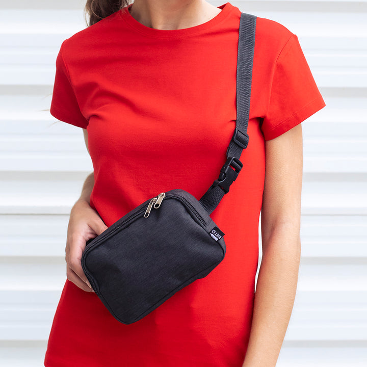 Rechteckige Hüfttasche aus RPET 600D Polyester. Verfügt über eine zentrale Reißverschlusstasche mit Doppelzieher und verstellbarem Riemen mit Schnallenverschluss. Es verfügt außerdem über ein markantes RPET-Etikett und wird einzeln in einem recycelten Beutel verpackt geliefert. RPET-Material wird aus recyceltem Kunststoff hergestellt und fördert so die Wiederverwendung von Kunststoffabfällen und trägt zur Nachhaltigkeit des Planeten bei.