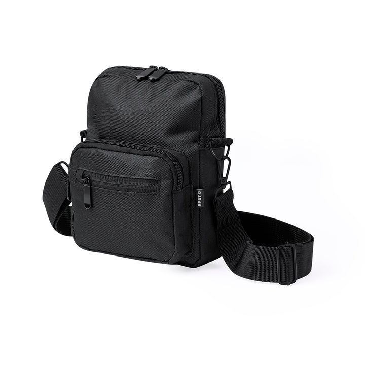 Umhängetasche aus RPET 600D-Polyester mit zentraler Reißverschlusstasche und doppeltem Reißverschluss sowie zwei Vorderfächern mit Schnellzugriff und Reißverschluss. Ausgestattet mit einem verstellbaren Riemen für mehr Komfort und einem RPET-Etikett. Einzeln in einer recycelten Tasche präsentiert. Umhängetasche aus RPET 600D-Polyester mit zentraler Reißverschlusstasche und doppeltem Reißverschluss sowie zwei Vorderfächern mit Schnellzugriff und Reißverschluss. Ausgestattet mit einem verstellbaren Riemen für mehr Komfort und einem RPET-Etikett. Einzeln in einer recycelten Tasche präsentiert.