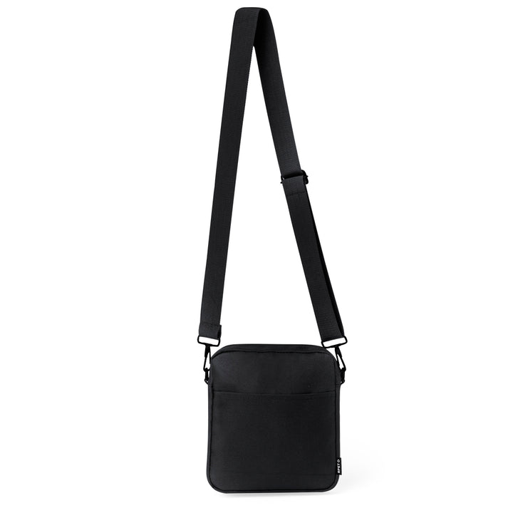 Umhängetasche aus RPET 600D-Polyester mit einer zentralen Reißverschlusstasche und einem leicht zugänglichen Vorderfach. Ausgestattet mit einem verstellbaren Riemen für mehr Komfort und einem RPET-Etikett. Einzeln in einer recycelten Tasche präsentiert. RPET-Material wird aus recyceltem Kunststoff hergestellt und fördert so die Wiederverwendung von Kunststoffabfällen und trägt zur Nachhaltigkeit des Planeten bei.