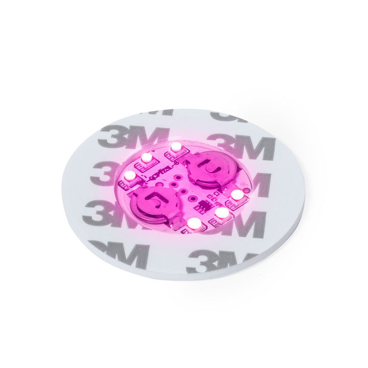 Origineller Untersetzer mit 6 LEDs zur Beleuchtung von Getränken. Mit Knopf am Sockel für verschiedene Beleuchtungspositionen: in festen oder gemischten Farben. Es wird mit einem Klebeband am Boden eines beliebigen Glases befestigt und wird von zwei Knopfzellen (im Lieferumfang enthalten) betrieben.