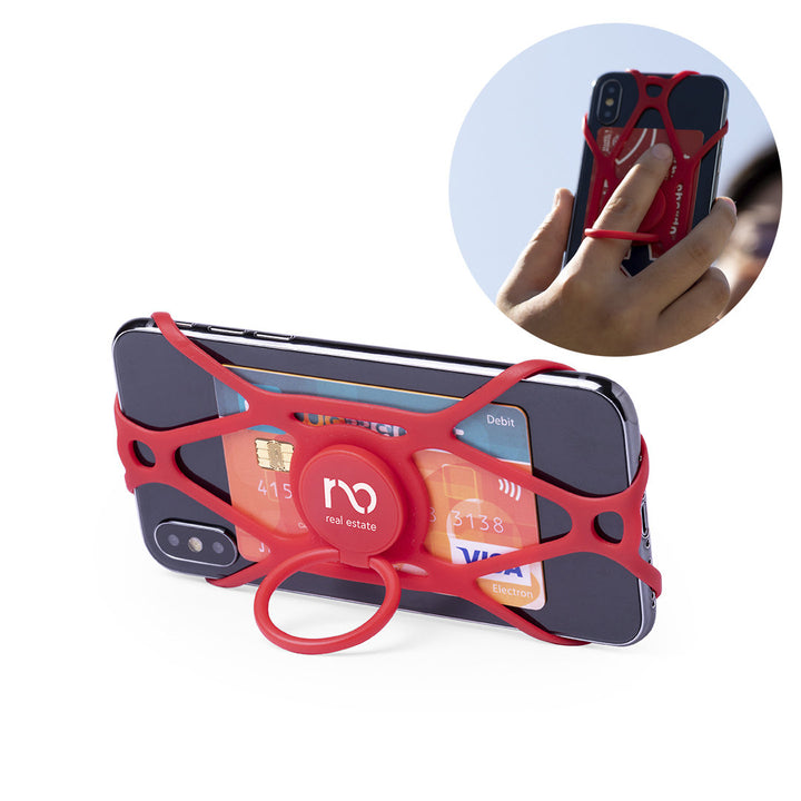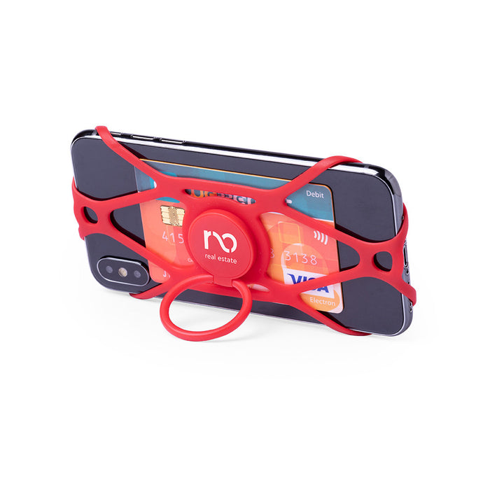 Práctico protector soporte 4 en 1, compatible con todos los modelos de smartphone. En resistente silicona y ABS, con función de paragolpes, anillo 360º para selfies, tarjetero y soporte. Disponible en variada gama de colores.