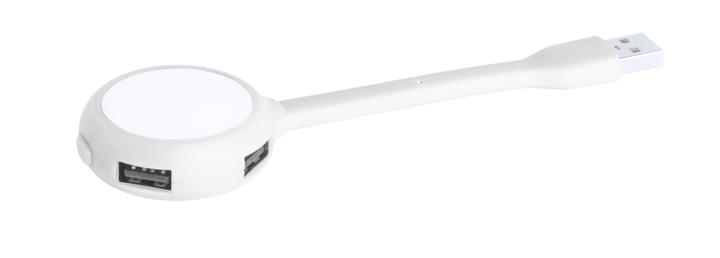 Originelles Gadget mit flexibler LED-Lampe und USB-Anschlüssen. Mit zweifarbigem Design und 5 LEDs sowie 4 USB-2.0-Ports um eine Vielzahl von Geräten zu verbinden. Aktivierung durch Powerbutton. Präsentiert in einer individuellen Box.