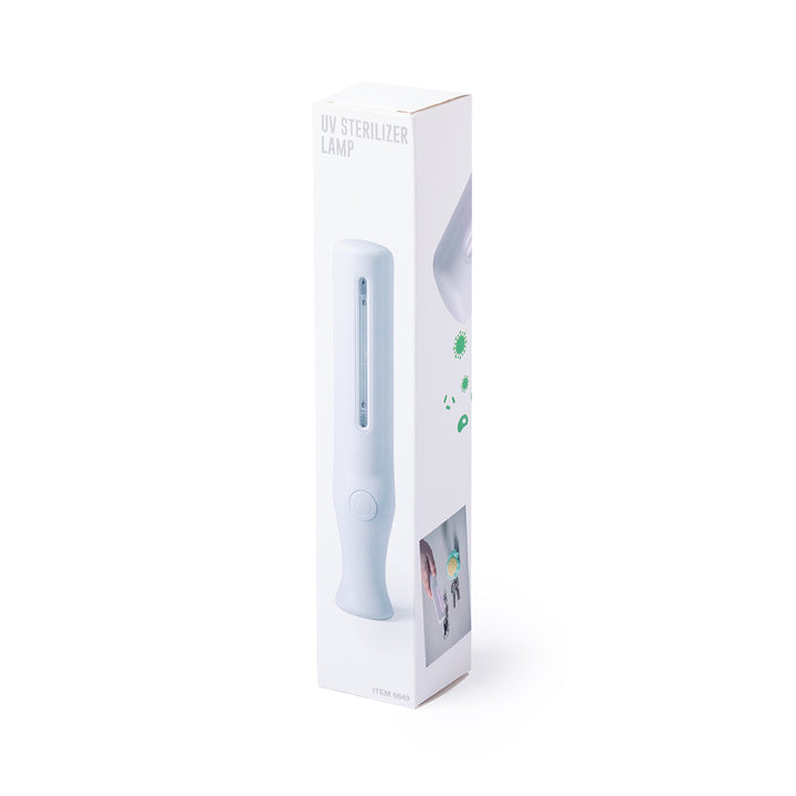 Ulltraviolettlicht-Sterilisationslampe Typ C. Speziell entwickelt für die Vernichtung von Mikroorganismen und Bakterien in Gegenständen des täglichen Gebrauchs wie dem Smarthpone, dem Einkaufswagen, dem Autolenkrad, der Kleidung...Einfach in der Anwendung: Bringen Sie die Sterilisationslampe für einige Sekunden in die Nähe des Objekts, in einem Abstand von 1 bis 2 cm. Leistung der Lampe 1W, Wellenlänge 254 nm und Spannung 3V, mit Batteriebetrieb (2xAAA nicht enthalten). Hergestellt aus widerstandsfähigem ABS-Material mit matter Oberfläche und präsentiert in einer attraktiven, individuellen Design-Box.Benutzerhandbuch in Spanisch und Englisch erhältlich.CE-, RoHS- und Gemizid-Wirksamkeitszertifizierung verfügbar.Vermeiden Sie für den ordnungsgemäßen Gebrauch des Produkts den Kontakt mit Haut und Augen.