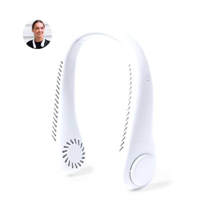 Handlicher, tragbarer Ventilator aus robustem ABS. Dieser elegante Ventilator wurde so konzipiert, dass er um den Hals getragen werden kann und ein kühlendes Gefühl vermittelt. Er bietet drei verschiedene Geschwindigkeitsstufen und ist über seinen 800-mAh-Akku wiederaufladbar, Micro-USB-Kabel inklusive. Präsentiert in einer Box im Kraftdesign.