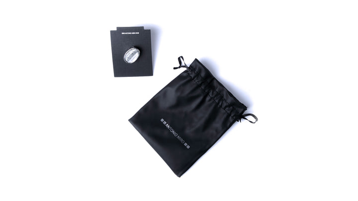 Verstellbarer Ring von Antonio Miró aus Metall mit Harzelement. Präsentiert in einem Kunstlederbeutel mit dem Markenlogo.