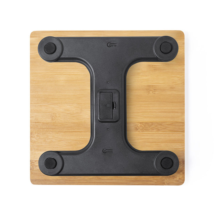 Linie "Natur" Linienwaage aus Bambus, mit rutschfestem Sockel. Digitale Anzeige, mit Funktionen zur automatischen Abschaltung, Temperatur, Tara und Auswahl der Wiegeeinheit. Batteriebetrieben (2xAAA nicht enthalten). Präsentiert in einer attraktiven Ökodesign-Box.