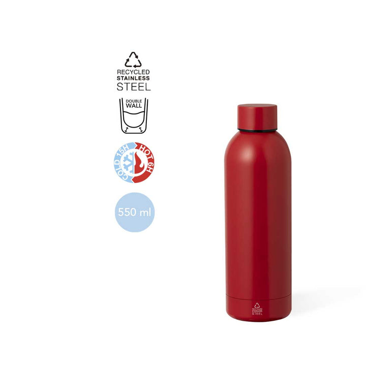 Die Wärme Flasche Keono ist eine perfekte Wahl für alle, die auf Nachhaltigkeit und Funktionalität setzen. Diese Thermosflasche wird aus recyceltem Edelstahl gefertigt und bietet nicht nur eine lange Lebensdauer, sondern auch hervorragende Isolierung, die Getränke über Stunden hinweg warm oder kalt hält. Mit einem Fassungsvermögen von 550 ml und einer doppelwandigen Konstruktion eignet sich die Flasche ideal für den täglichen Gebrauch.