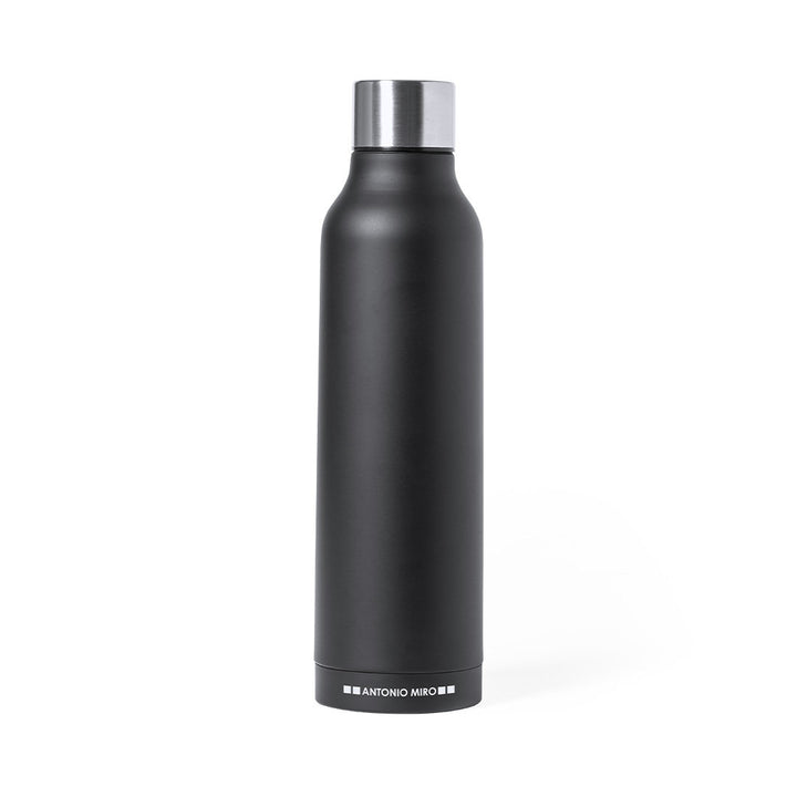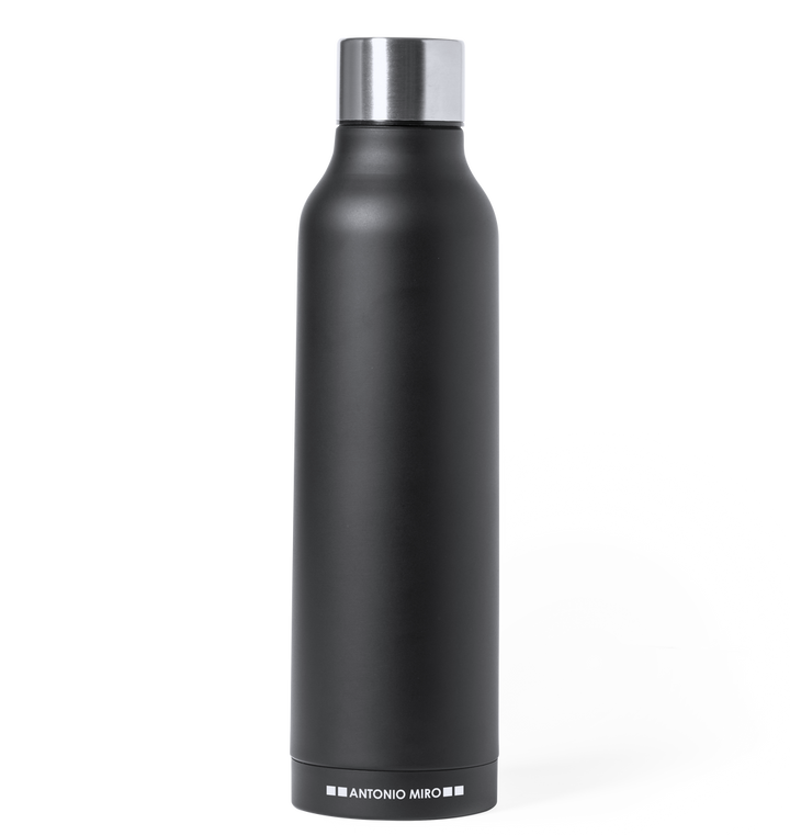 Gefertigt aus hochwertigem rostfreiem Stahl, beeindruckt die Thermoskanne mit ihrem mattschwarzen Finish, das eine zeitlose Eleganz ausstrahlt. Am Boden der Kanne ist dezent das Logo von Antonio Miró eingraviert, was das edle Design zusätzlich unterstreicht. Der verchromte Schraubdeckel schließt sicher und verhindert ein Auslaufen, sodass die Kanne zuverlässig transportiert werden kann.