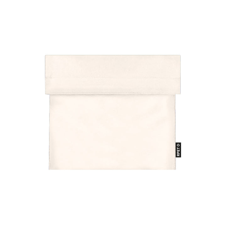 Thermosnackbeutel aus RPET 210T Polyester. Isoliertes Inneres aus PEVA, mit Klettverschluss und Außenschild mit RPET-Merkmal.RPET-Material wird aus recyceltem Kunststoff hergestellt, um die Wiederverwendung von Kunststoffabfällen zu fördern und zur Nachhaltigkeit des Planeten beizutragen.