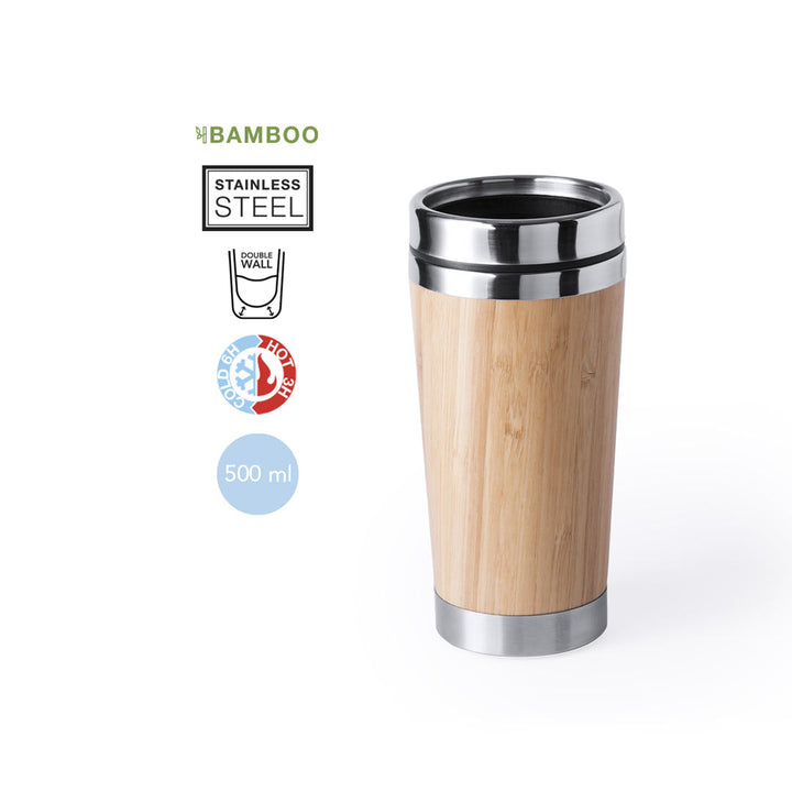 Der Becher besteht aus hochwertigem Bambus und rostfreiem Stahl, wodurch er nicht nur robust ist, sondern auch ein angenehmes, natürliches Gefühl beim Trinken vermittelt. Das Bambus-Äußere sorgt für eine ästhetische Optik, während der Edelstahl das Getränk lange warm oder kalt hält.