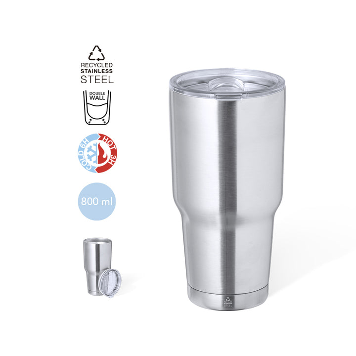 - Eigenschaften: Doppelwandig, BPA-frei, Spender im Deckel, Recycled Stainless Steel-Logo
