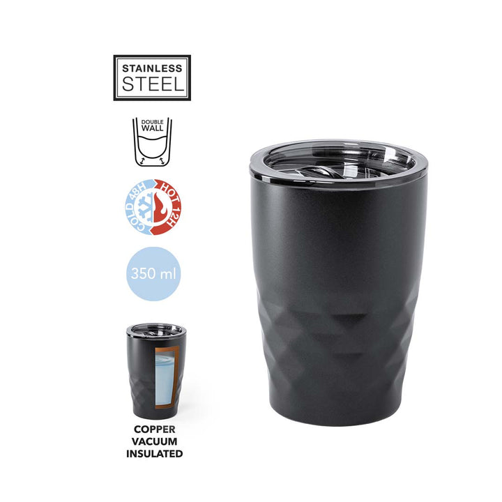Der Becher ist in verschiedenen modernen Metallicfarben erhältlich, die für jedes Umfeld und jeden Geschmack geeignet sind. Durch seine kompakten Maße und das geringe Gewicht von nur 185 g lässt er sich bequem in Taschen oder Rucksäcken transportieren.