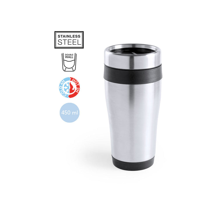 Der Wärme Trinkbecher Fresno aus hochwertigem rostfreiem Stahl bietet eine perfekte Kombination aus Funktionalität und stilvollem Design. Mit einem Fassungsvermögen von 450 ml, einem Durchmesser von 8,6 cm und einer Höhe von 18 cm ist der Becher ideal für den täglichen Gebrauch. Das glänzende Finish und die lebendigen, kontrastierenden Farben machen ihn zu einem eleganten Accessoire, das sich perfekt für unterwegs eignet.