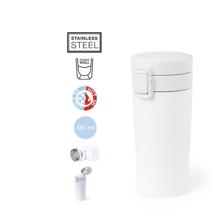 Der Wärme Trinkbecher Jorlens ist die perfekte Wahl für alle, die eine Kombination aus praktischer Funktionalität und stilvollem Design suchen. Mit einem Fassungsvermögen von 380 ml bietet er genug Platz für heiße und kalte Getränke und sorgt dank der doppelwandigen Isolierung aus rostfreiem Stahl für eine lange Temperaturhaltung.