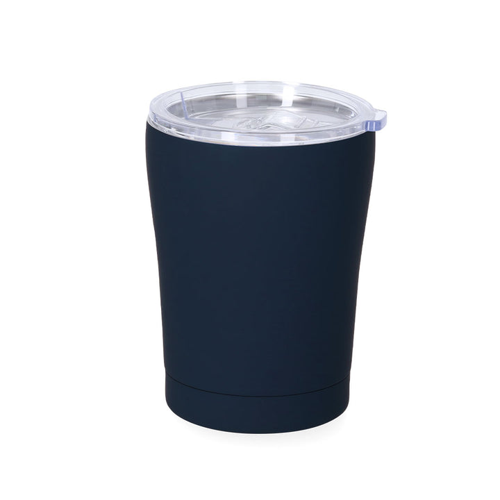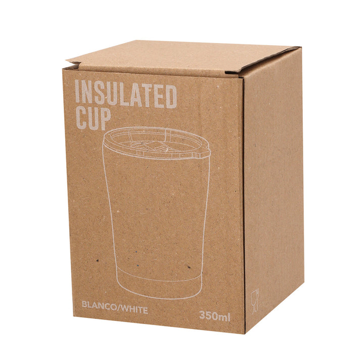 Isolierbecher aus doppelwandigem Edelstahl mit einem Fassungsvermögen von 350 ml. Außenseite mit mattem Gummi-Finish, speziell für Lasergravuren konzipiert. Inklusive transparentem Schnappdeckel mit Spender und leicht zu öffnendem, BPA-freiem Verschluss. Es ist ideal für Ihren Schreibtisch, Tisch oder jede andere Oberfläche, auf der Sie in Ruhe Ihr Lieblingsgetränk genießen können.