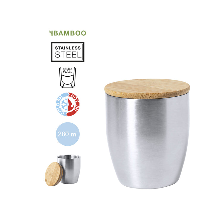 Mit einem Fassungsvermögen von 280 ml eignet sich der Wärme Trinkbecher Zasel ideal für Kaffee, Tee oder andere Heißgetränke. Der Deckel aus natürlichem Bambus verleiht dem Becher eine stilvolle und umweltfreundliche Note, die das Design abrundet.