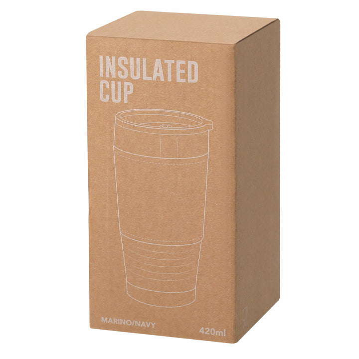 Isolierbecher aus doppelwandigem Edelstahl und hochwertigem PU. Mit einer Kapazität von 420 ml. Inklusive einer eleganten PU-Hülle mit markanter weißer Naht. Es ist ideal für Ihren Schreibtisch, Tisch oder jede andere Oberfläche, auf der Sie in Ruhe Ihr Lieblingsgetränk genießen können. Mit transparentem Deckel mit Spender, leicht zu öffnen und BPA-frei.
