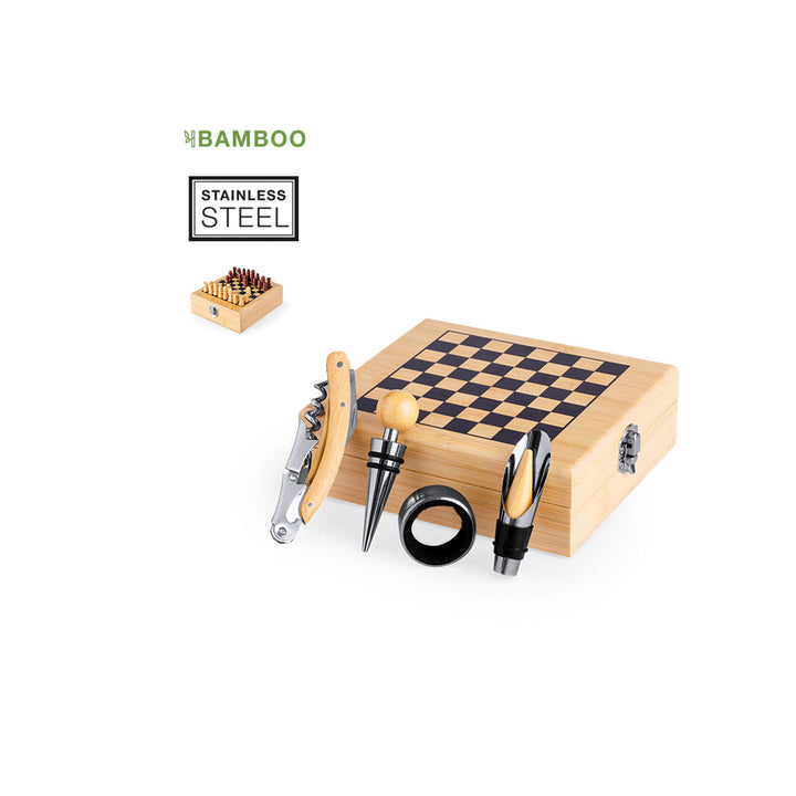 Das Wein Set Paluk vereint Stil und Praktikabilität in einem eleganten Paket und ist das perfekte Accessoire für jeden Weinliebhaber. Es enthält vier sorgfältig ausgewählte Teile, die alle aus robustem Bambus und Edelstahl gefertigt sind. Das Set wird in einem ansprechenden Etui präsentiert, das nicht nur für eine sichere Aufbewahrung sorgt, sondern auch die Umweltfreundlichkeit des Produkts betont.