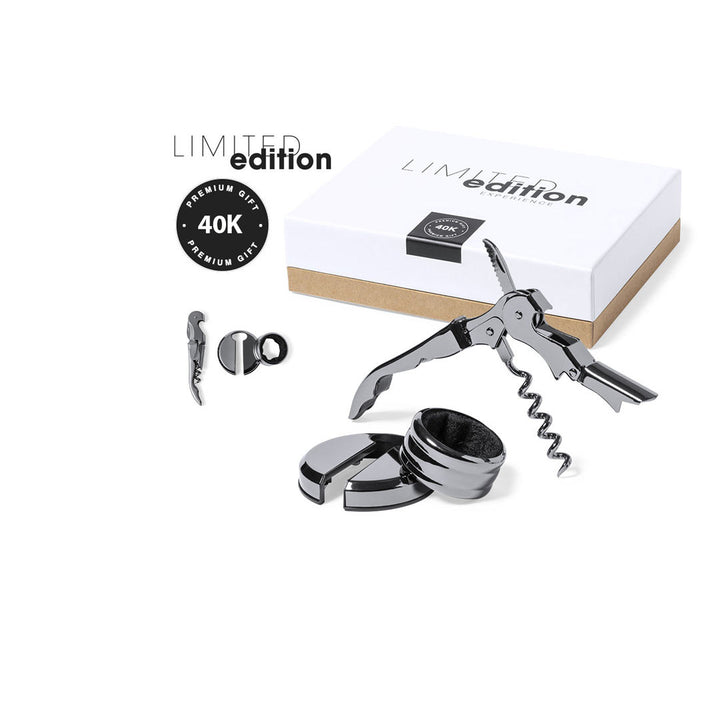 Das Wein Set Zerquen ist ein hochwertiges und limitiertes Produkt, das durch seine Eleganz und Funktionalität besticht. Gefertigt aus rostfreiem Stahl mit einer edlen schwarzen Oberfläche, vereint dieses Set durchdachtes Design mit praktischen Eigenschaften.