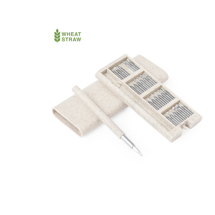Das Werkzeug-Set Zephyr vereint praktische Funktionalität mit einem umweltfreundlichen Ansatz. Gefertigt aus einer Kombination von Weizenstroh und robustem ABS, bietet dieses Set eine nachhaltige Alternative zu herkömmlichen Werkzeugen, ohne dabei Kompromisse bei Haltbarkeit und Qualität einzugehen.