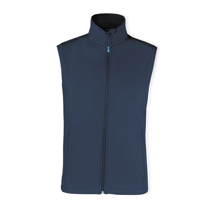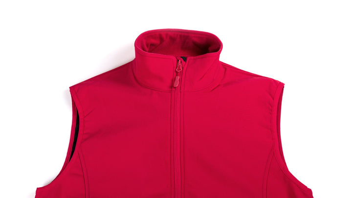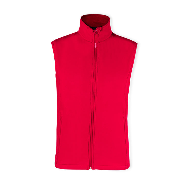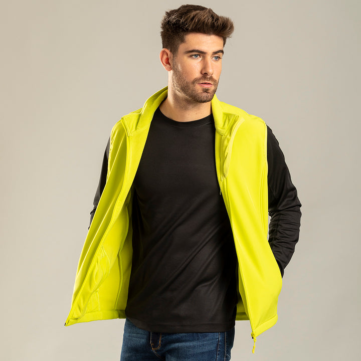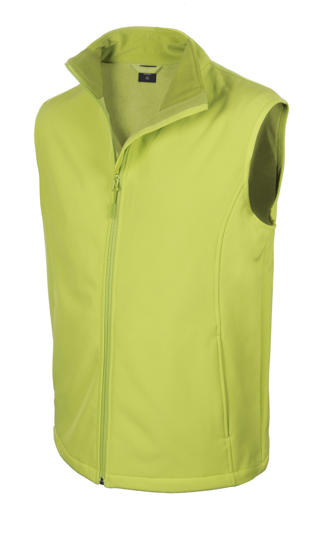 Wasserabweisende und atmungsaktive Weste aus einer Soft-Shell/Elasthan-Kombination. Mit Reißverschluss und Fronttaschen. Verfügbar in verschiedenen lebendigen Farben und den Größen S, M, L, XL und XXL.