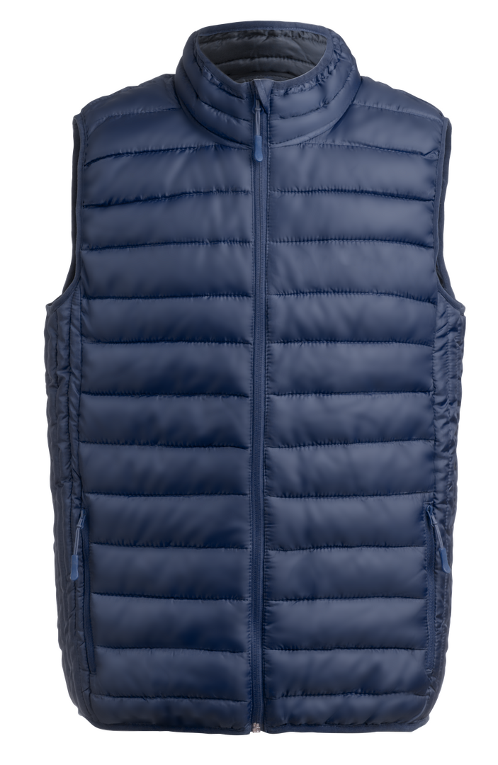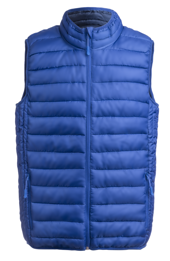 Weste au warmem und weichem Material aus 100% Polyester. Aus extra leichtem, kompaktem, wasser- und winddichtem Material, mit Innenwattierung. Reißverschluss mit Zipper und großen Seitentaschen. Kragen mit Reißverschluss und Knopfleiste und Seitentaschen mit Zipper. Inklusive praktischer Tragetasche. Erhältlich in den Größen S, M, L, XL, XXL.