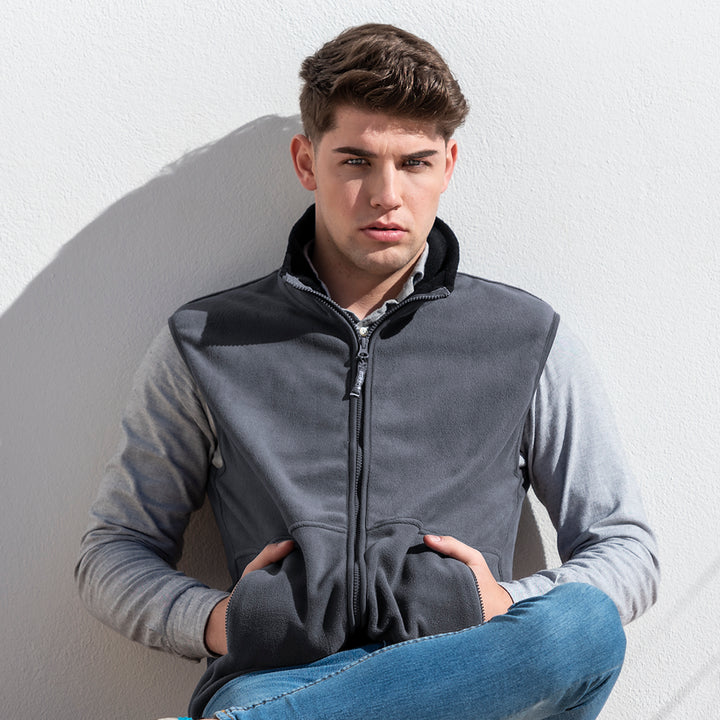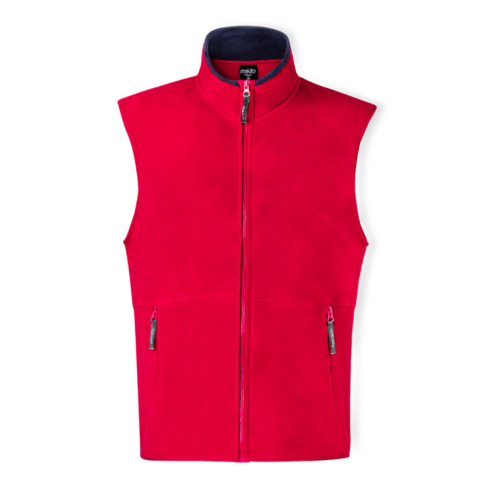 Weste aus weichem und warmem Polar-Fleece (280 g/m2) mit Anti-Pilling-Behandlung. Mit farbigem Innenkragen, Reißverschluss mit Zugband, seitlichen Reißverschlusstaschen und elastischem Bund. Erhältlich in den Größen M, L, XL und XXL.